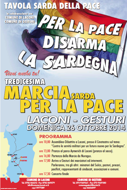 XIII^ Edizione marcia sarda per la pace Laconi – Gesturi – 26 ottobre 2014